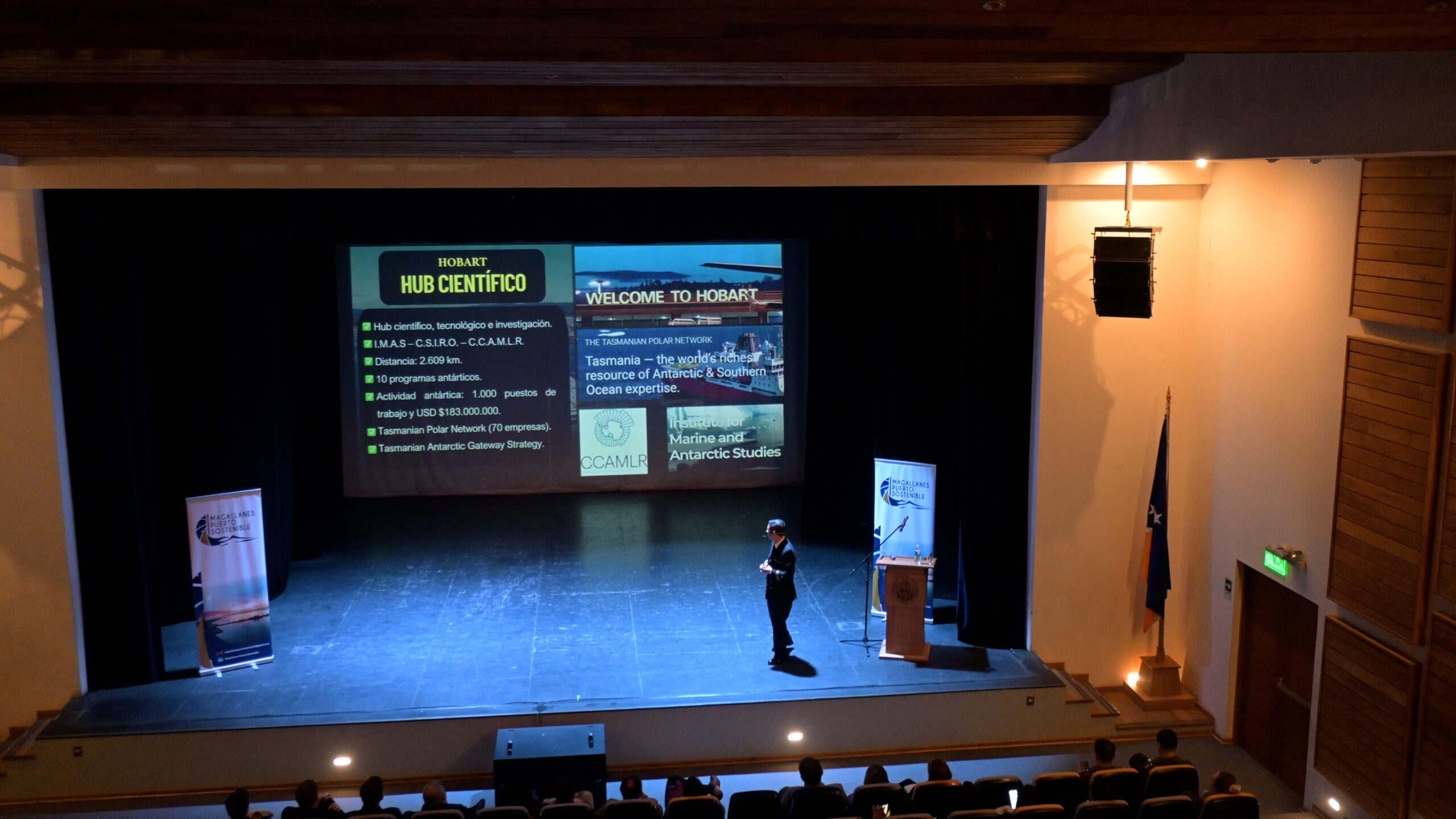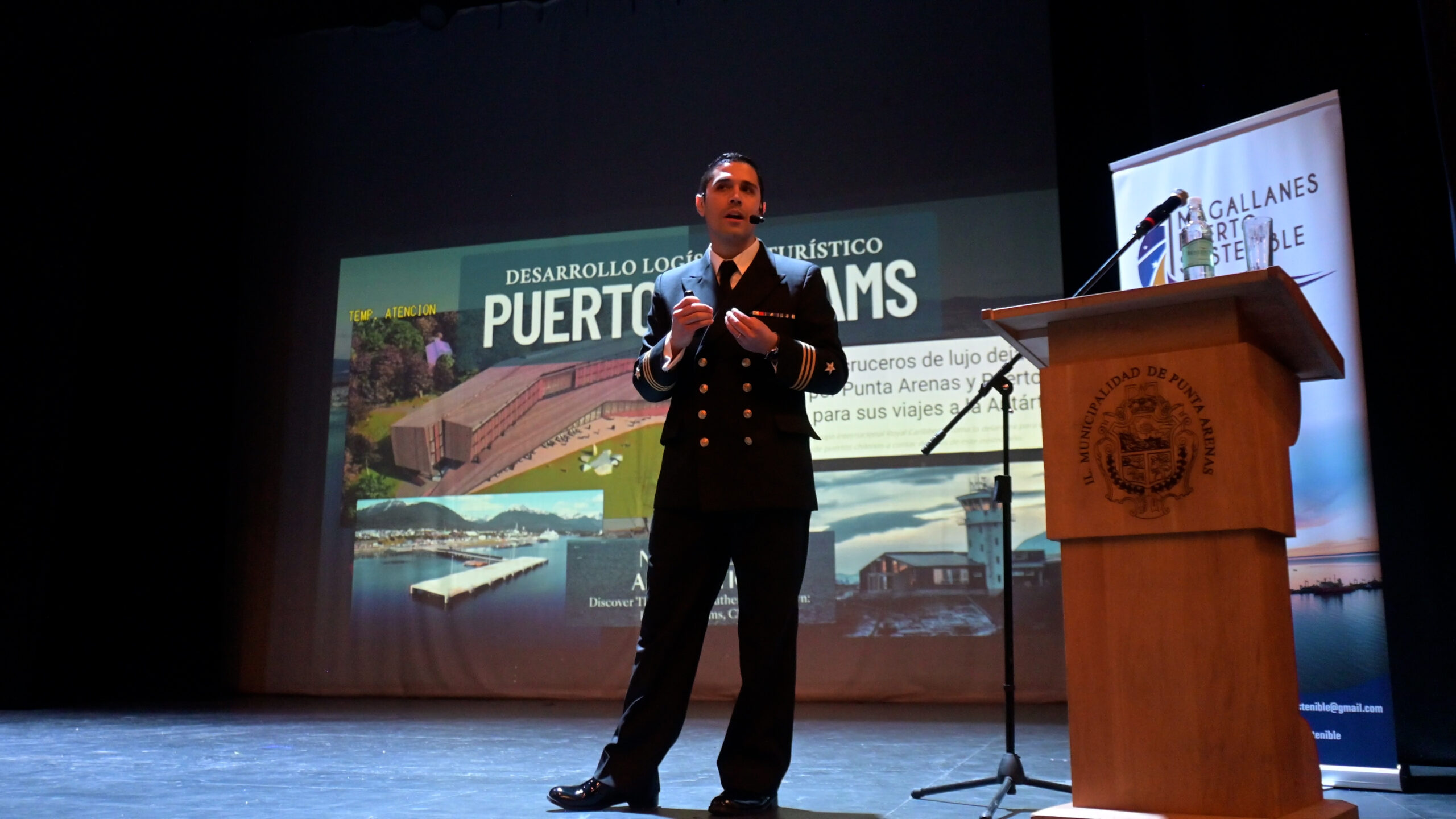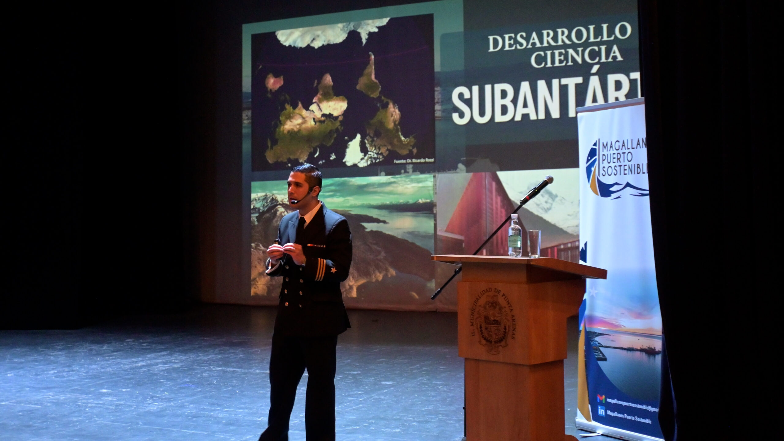Por otro lado, Simón Fernández, oficial de la Marina e investigador del Centro de Estudios Estratégicos de la Armada de Chile, abordó los retos que enfrenta el país y Magallanes en la conexión de nuestro país con la Antártica, donde detalló que su presentación buscaba “dar a conocer las características actuales de Punta Arenas y Puerto Williams como puertas de entrada a la Antártica y los proyectos de inversión que se están desarrollando para consolidarnos como una potencia antártica”.