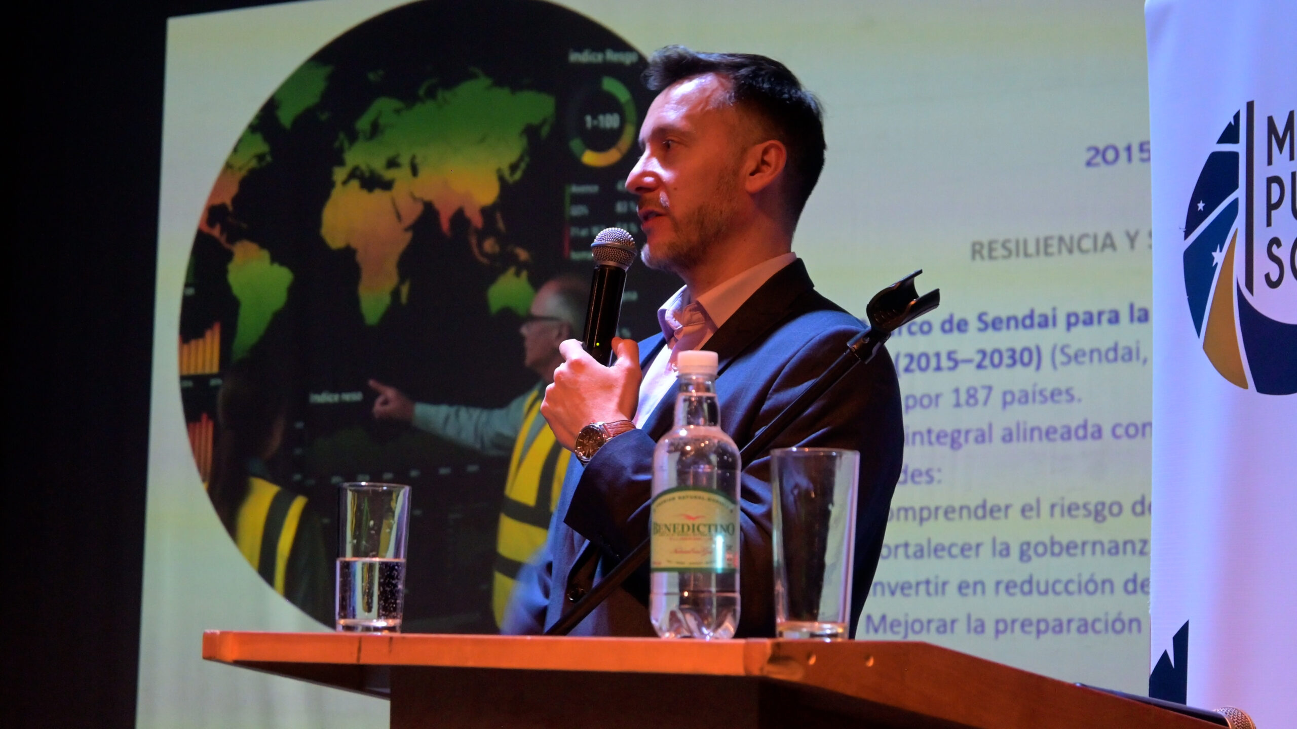 También estuvieron Juan Carlos Andrades, director regional de Senapred, y Rodrigo Santana, subgerente Zonal Austral del IST, quienes dialogaron con los asistentes sobre planes de gestión de riesgos ante desastres. “En Chile tenemos una normativa potente y completa en términos de exigir que este instrumento sea implementado en todos los niveles”, detalló Santana.